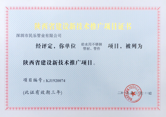 陜西省建設新技術推廣項目證書