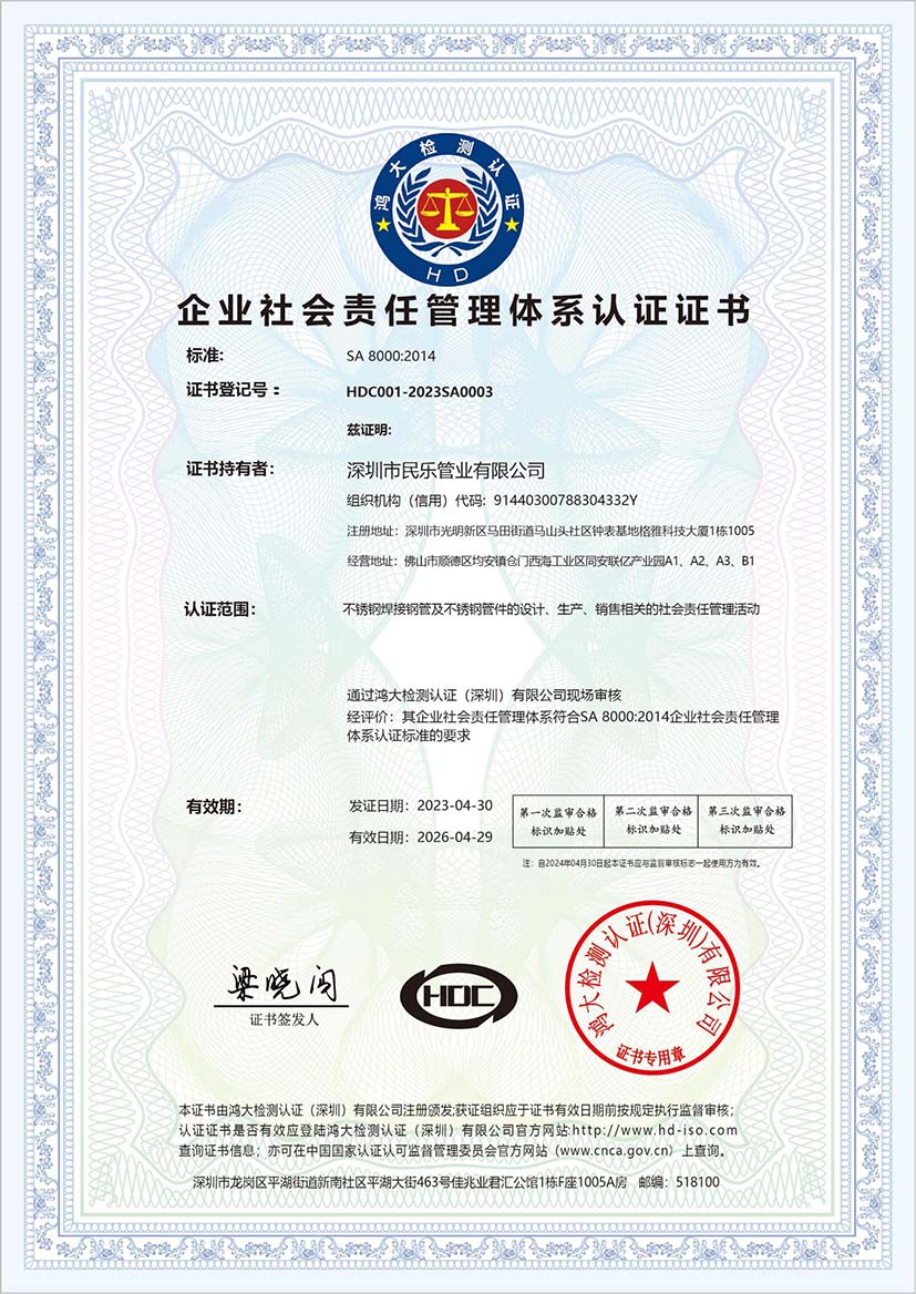 民樂管業(yè)(江門)有限公司自成立以來,不斷建立、健全各項規(guī)章管理制度,支持國家政策,積極履行社會責(zé)任,堅持做到規(guī)范經(jīng)營、誠信經(jīng)營,積極承擔(dān)并履行法定納稅義務(wù)。有力地支持了國家和地方財政稅收,促進(jìn)和帶動了自身及地方經(jīng)濟(jì)的發(fā)展。公司不斷擴(kuò)大招聘規(guī)模,努力為當(dāng)?shù)鼐用駝?chuàng)造就業(yè)機(jī)會,為人民生活改善做出了應(yīng)有的貢獻(xiàn),使社會能夠共享企業(yè)的發(fā)展成果。2024年度社會責(zé)任報告