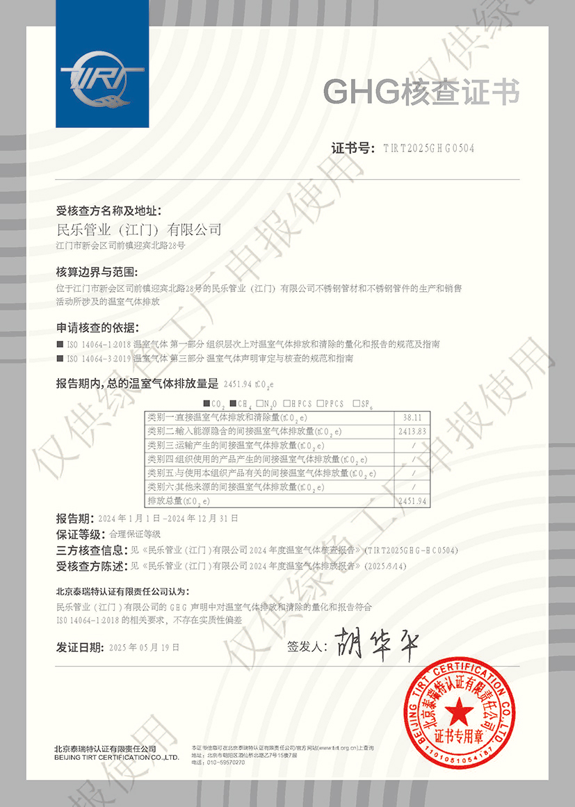 民樂管業(yè)(江門)有限公司GHG核查證書
